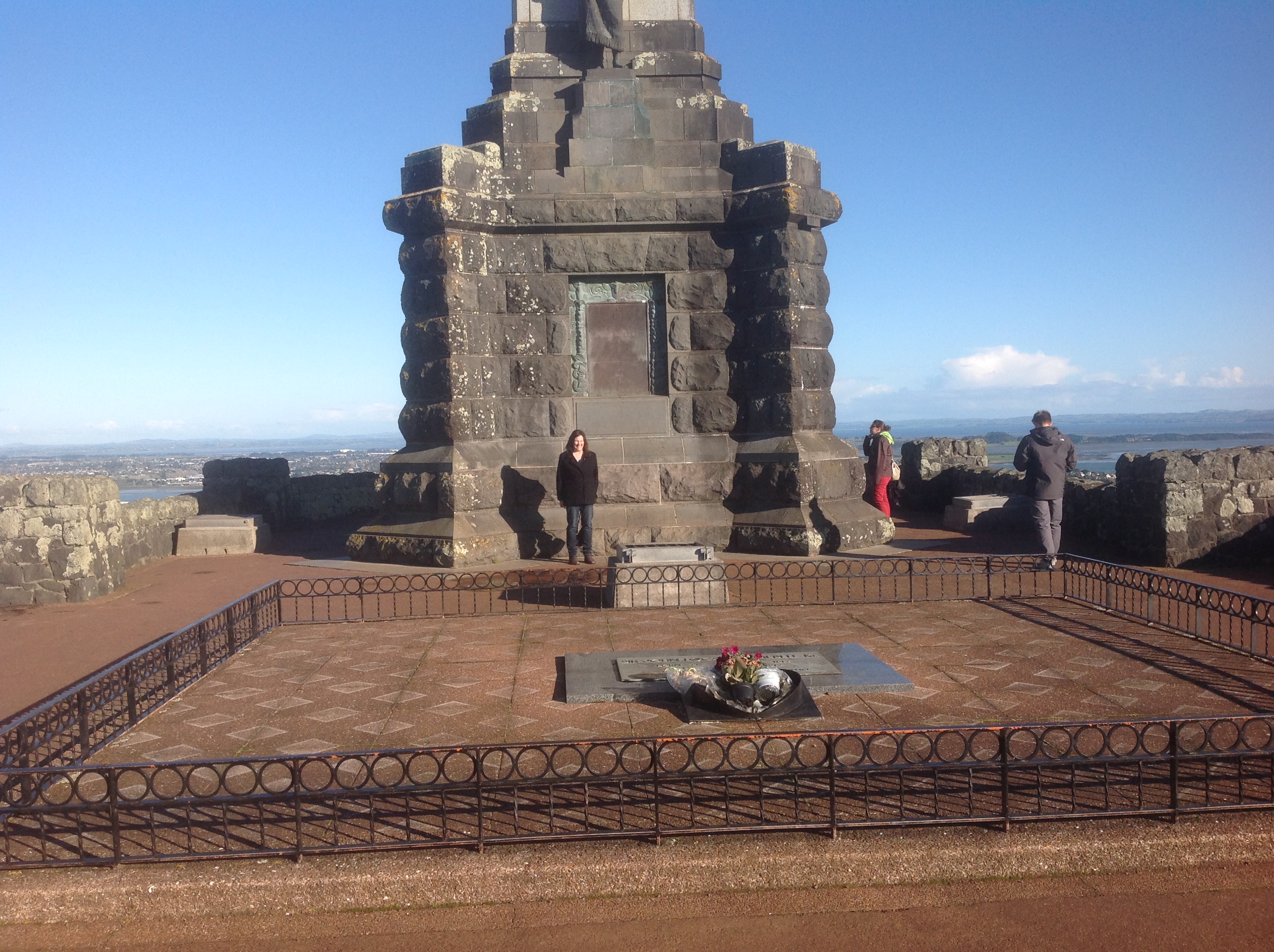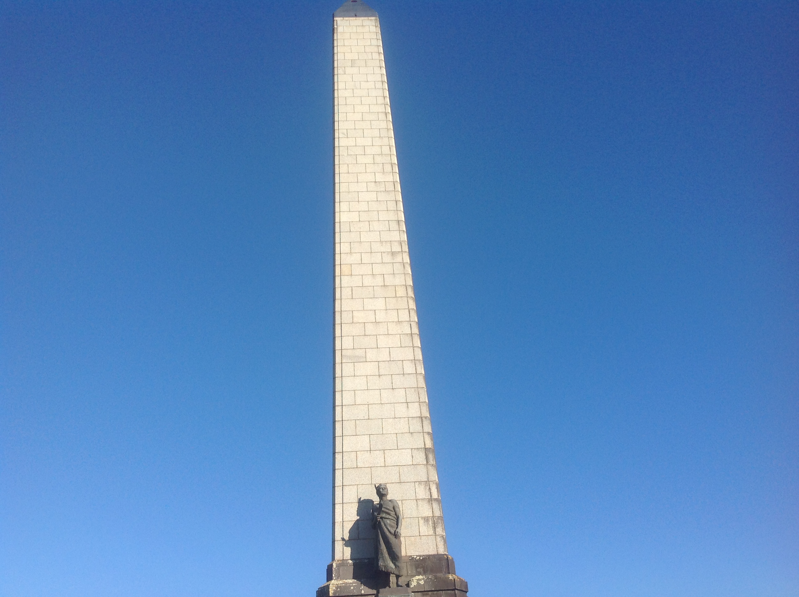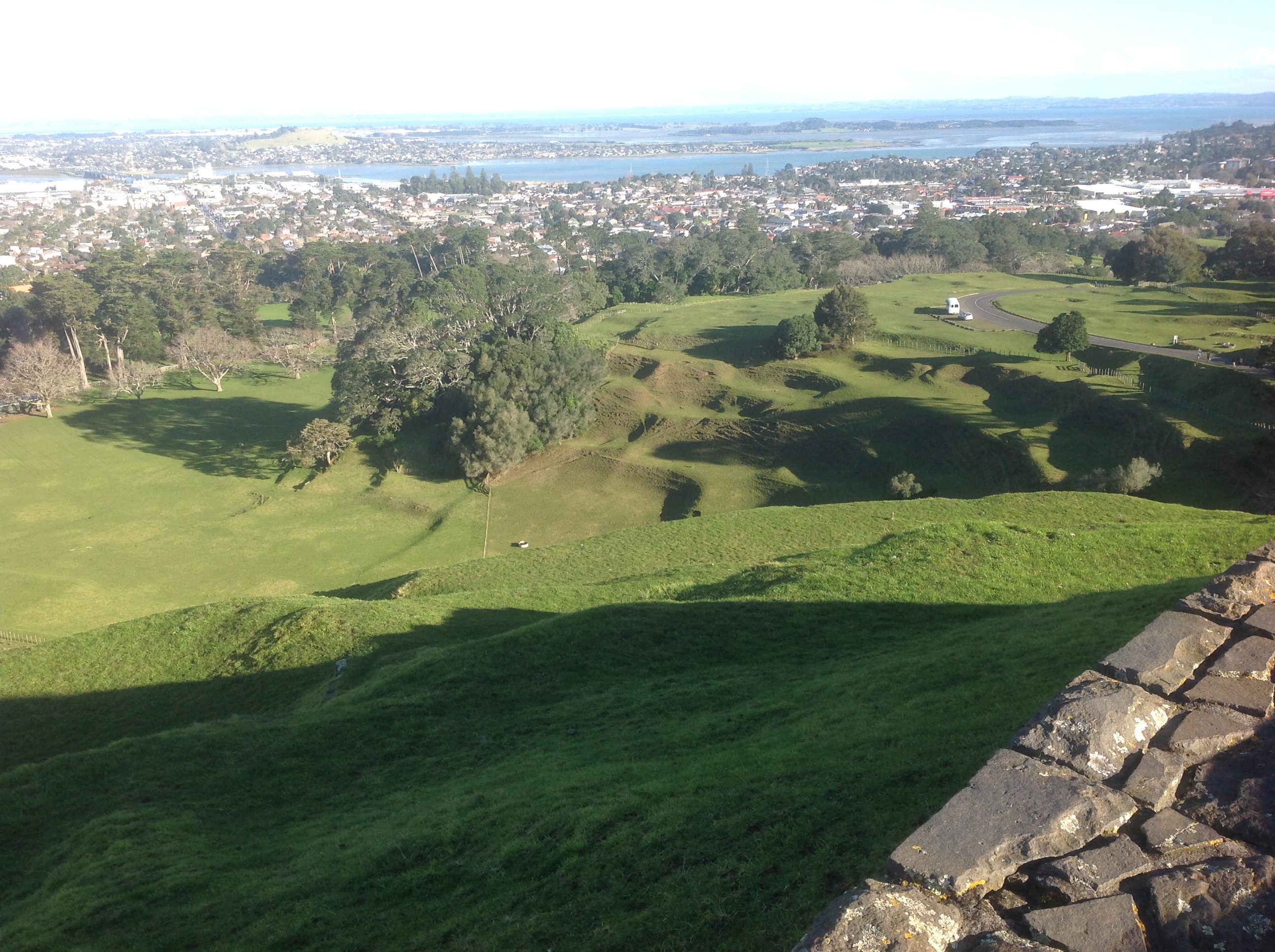Then we got up at 2:45 a.m. on July 24 and took the 6:30 flight from Brisbane to Auckland on the first part of our journey home. Since we had about six hours layover in Auckland, Barry and Elaine again picked us up at the airport. We were able to meet another couple from Auckland who had been unable to make contact with us earlier. They all took us on a tour of Auckland, and we went up the volcanic cone to the obelisk overlooking Auckland.