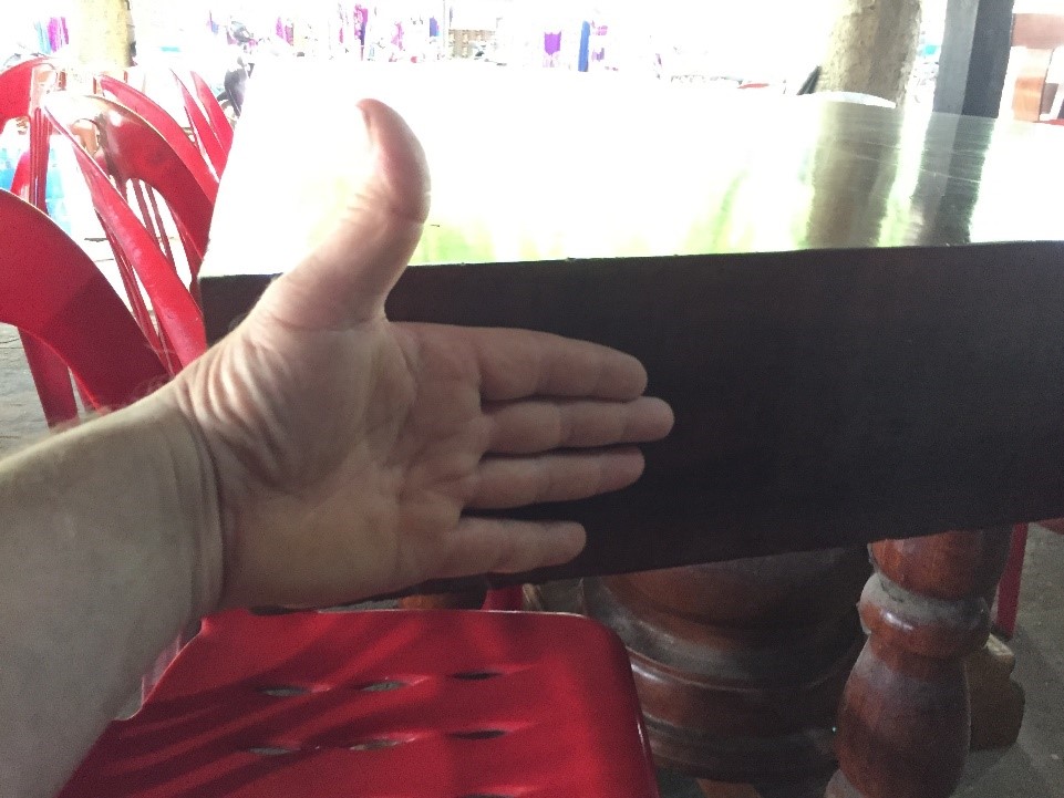 Brad took a selfie of his hand on the side of a table to show how thick it was.