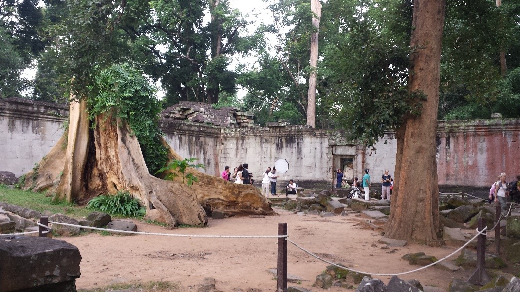 The priests in this temple had planted many trees near the buildings and walls, because they revered nature. But in the end, nature took over, and because they could not bring themselves to cut down their sacred trees, they eventually had to abandon the temple and leave it in the hands of the trees.