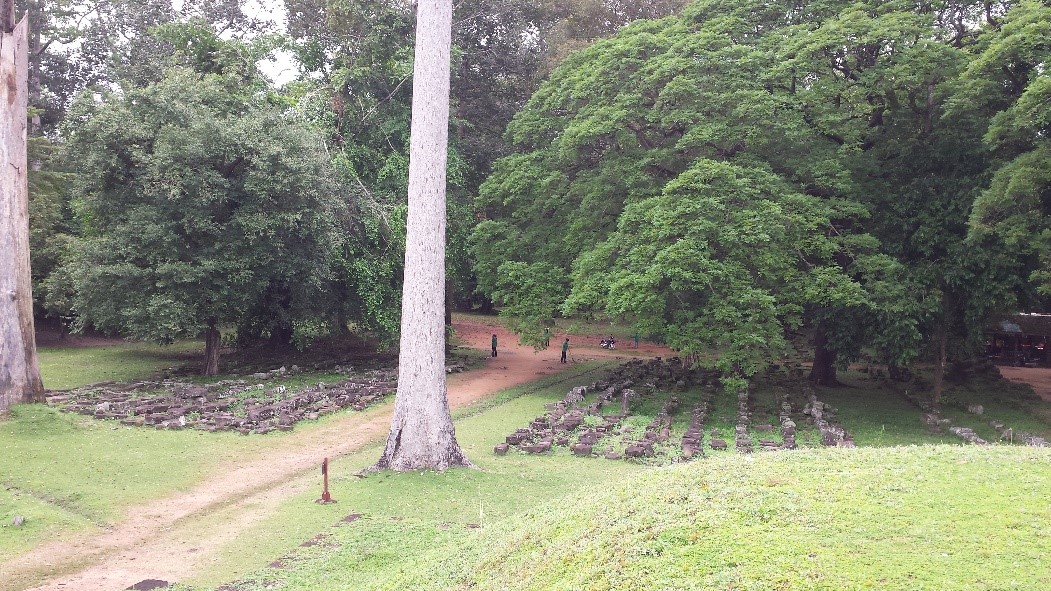 At the end of the passage way was a staircase going up. At the top we emerged to view our surroundings. In times past, the elephant training grounds were in the field on the left.