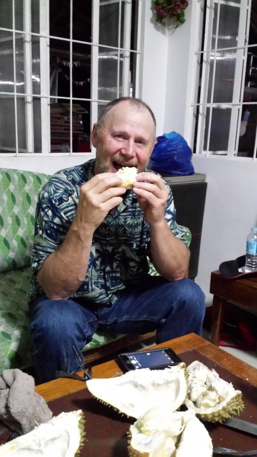 A few years ago (2013) when Darla came with me to the Philippines, she actually liked it on her first try. Most westerners have to work at it to gain an appreciation for it (as I did years ago as a child). Brad survived his first experience with durian during one of these evenings.