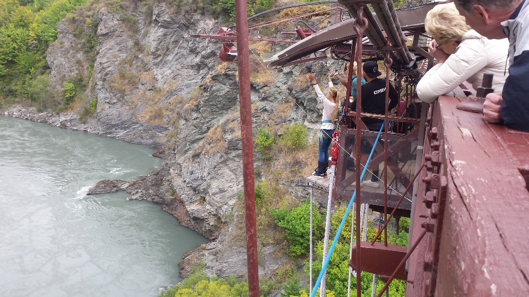For Darla’s sake, we also stopped at a place along a river where she could do some bungy jumping. Although she is the adventurous type, she declined this time. It was too cold, and she didn’t want to get her hair wet. So we were content to watch others do it.