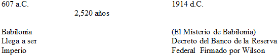 Al mismo tiempo vemos el levantamiento de una nueva Babilonia en 1914 en forma del sistema de la Reserva Federal. Este sistema fue una nueva forma de cautividad babilónica, como profetizado en el libro de Apocalipsis.